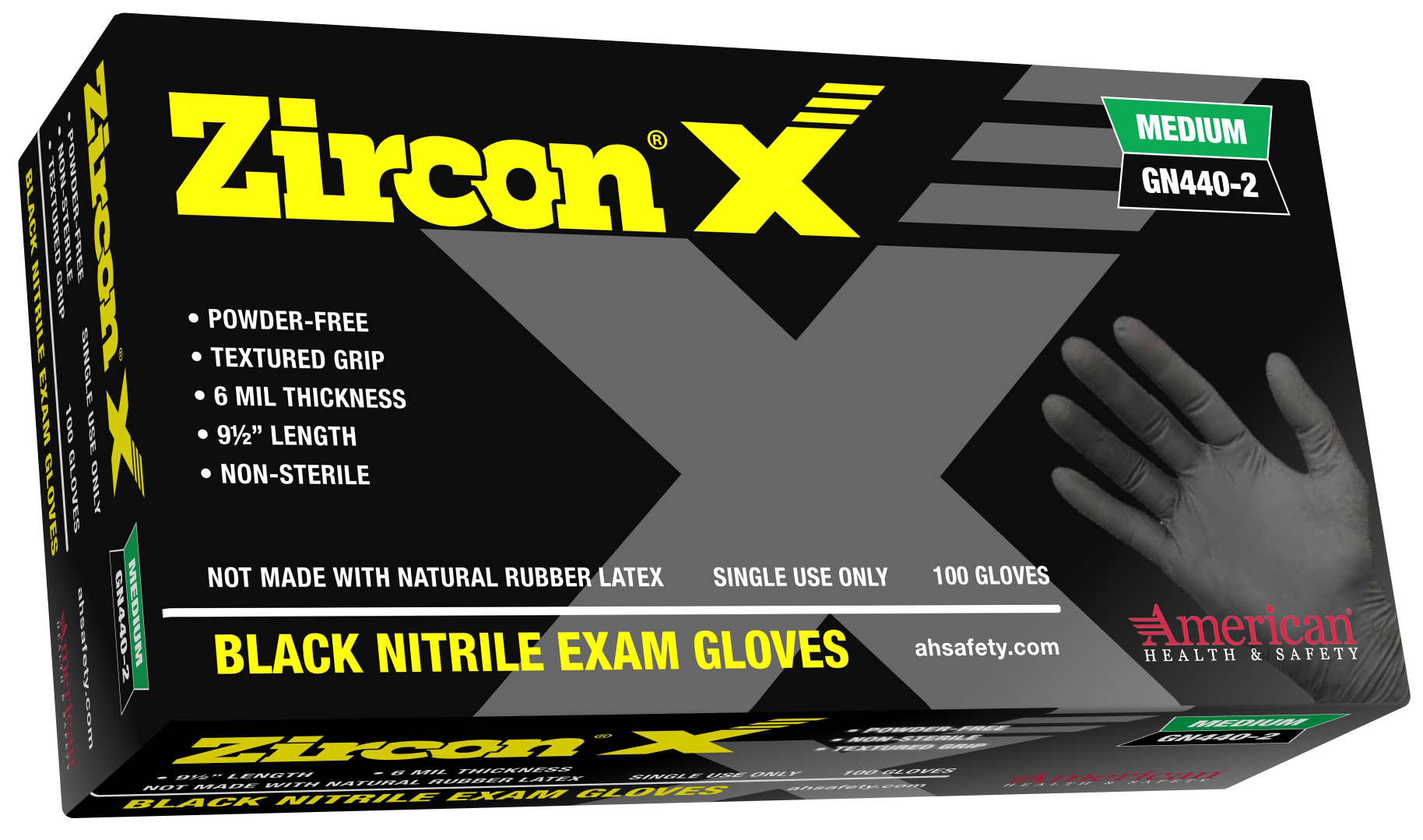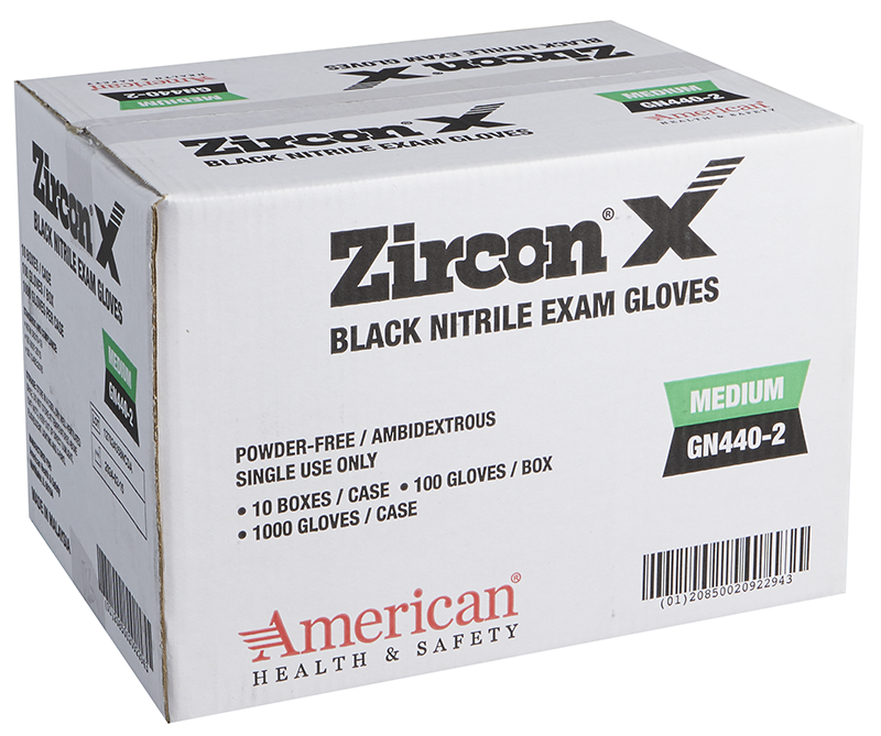 American Health & SafetyŽ GN440 Zircon X Black Nitrile Exam Gloves, 6 mil, 1000/Case