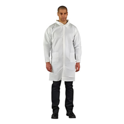 American Health & Safety® lab coats are ideal for workers who require on consistent quality industrial clothing to protect them from workplace risks and help them to do their job more effectively. This disposable lab coat offers a microporous laminate construction with a snap front design. It features 2 pockets and latex and silicone free.