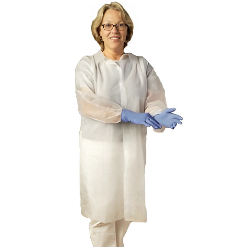 These polypropylene lab coats provide an effective, low-cost garment solution that protects against dry particulates such as dirt and dust in the workplace. They are lightweight, breathable, comfortable and can be used in a variety of settings such as hospitals, food processing plants and general industrial applications.