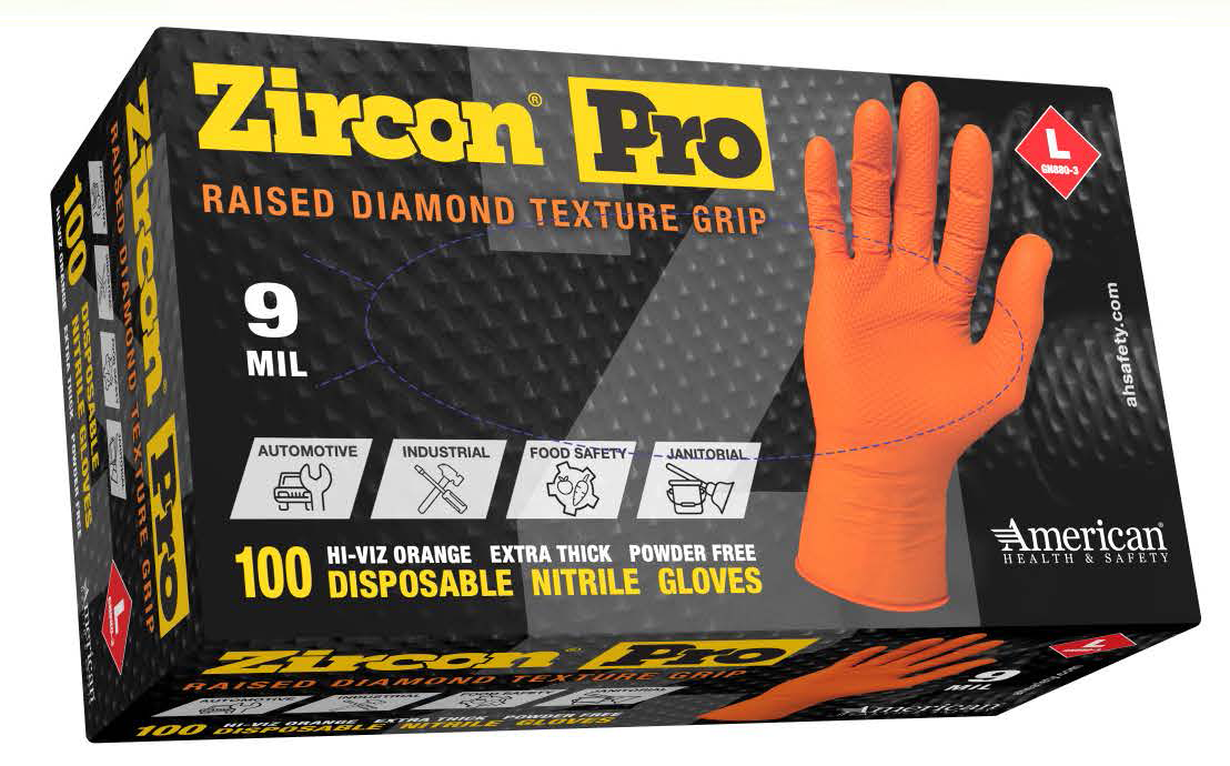 American Health & SafetyŽ Zircon Pro Orange Nitrile Gloves, 9 mil, 1000/Case