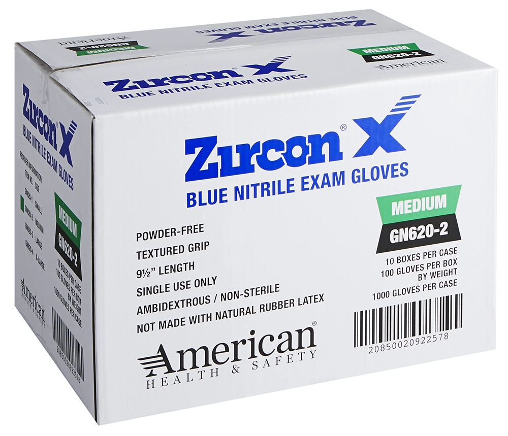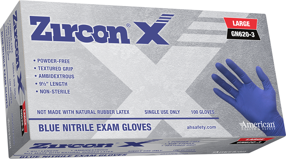 American Health & Safety™ Zircon X™ Nitrile Exam Gloves, 6 mil, Blue, Powder-Free, 1000/Case
