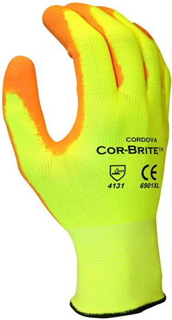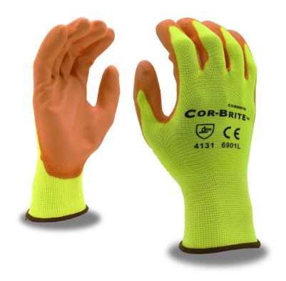 Cordova® COR-BRITE™ Hi-Vis Yellow/Orange Polyurethane Palm Coated Gloves - Dozen/Pairs