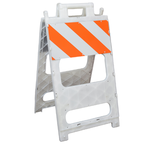 - Patented fold-flat design: The barricade collapses to near flat for easy transport and storage – and stacks neatly with others for tidy job sites