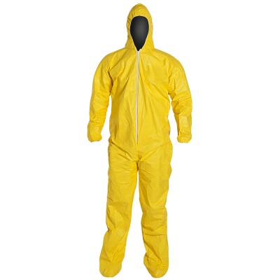 DuPont Tychem QC122S Coveralls, Attached Hood & Socks, Elastic Wrists, 12/Case