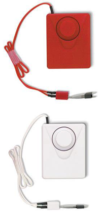 Devices sound off with 105 dB alarms with extinguisher removal. They’re self-adhesive, too, installing in seconds. Uses one 9V battery (not included). 2 3/4"H x 2 1/4"W x 1"D.