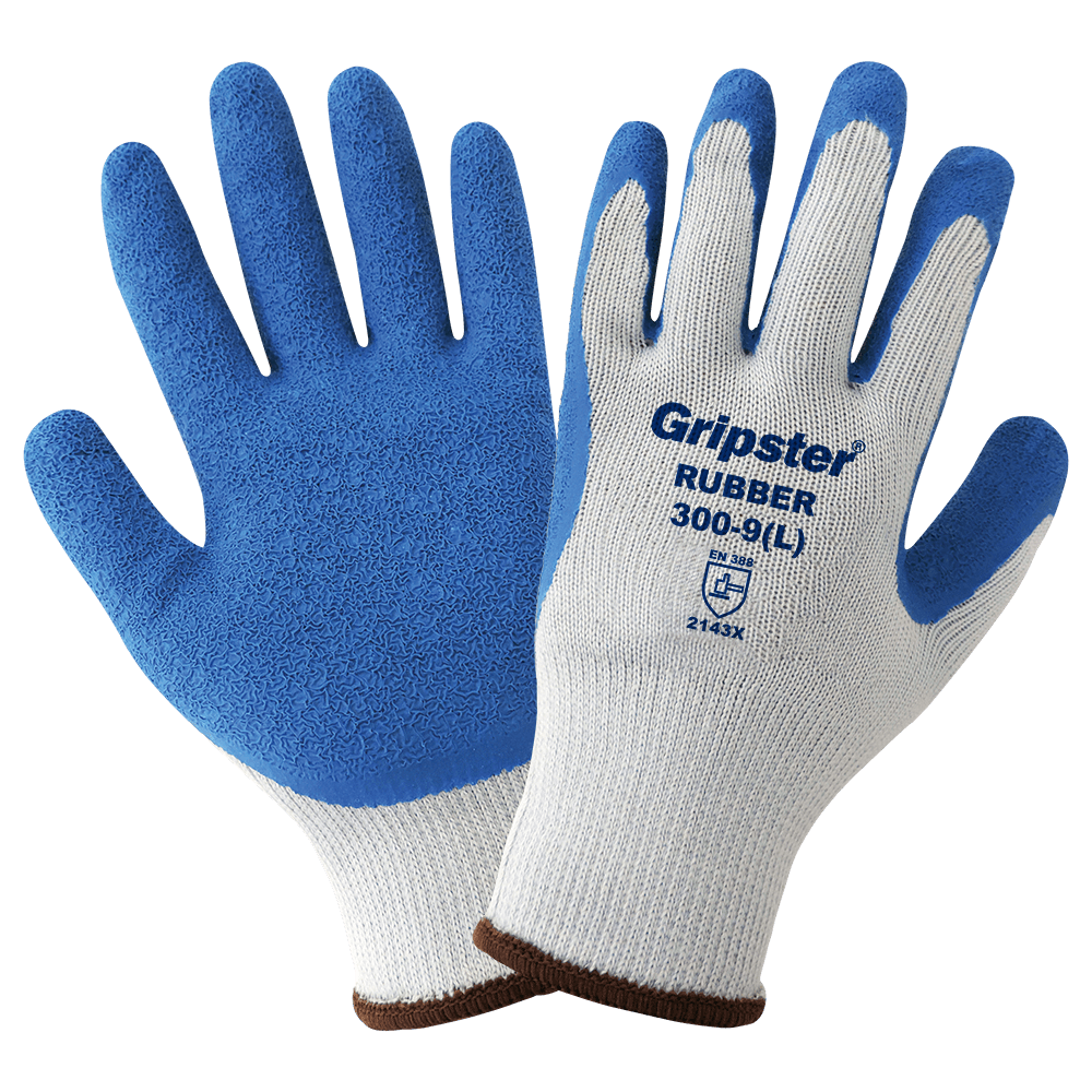 Global Glove® 300 Gripster® Gray Polyester/Cotton Shell with Blue Rubber Palm Coated Gloves – Dozen