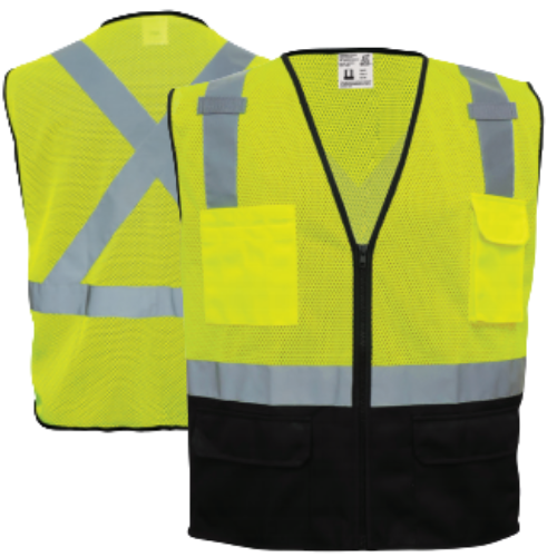 • Color – Yellow/Black with 2" Silver Reflective Striping that Forms an X on the Back