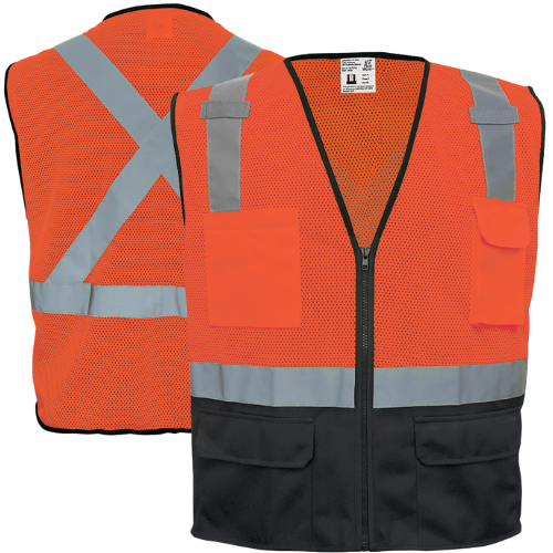 • Color – Orange/Black with 2" Silver Reflective Striping that Forms an X on the Back