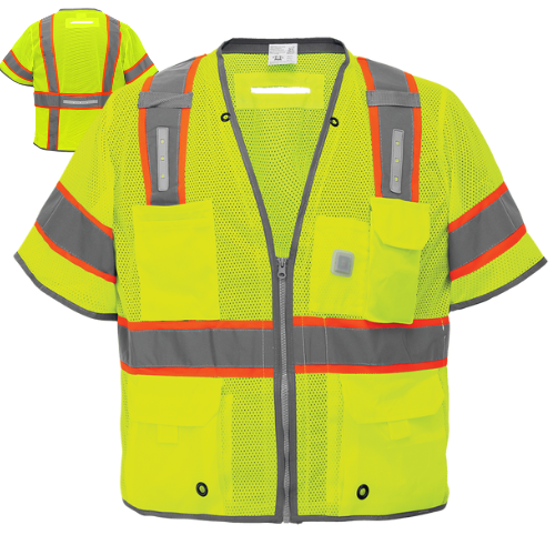 Brighten up your safety gear with a vest that doesn’t just help you be seen — it lights you up. This premium surveyor’s safety vest brings traditional Class 3 high-visibility performance together with built-in LED illumination, so you stay visible in low-light, dusk, dawn, or night-shift conditions. Built for pros who work where visibility saves lives, it adds modern lighting features to trusted surveyor-style design.