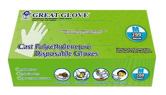 The Great Glove C Series Polyethylene Gloves by GD Care feature an embossed interior and are latex-free.  Gloves are clear and have 200/Box.