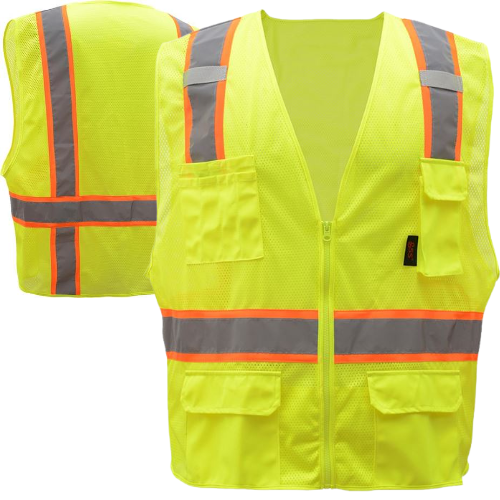 GSSŪ 1501 Premium Class 2 Mesh Two-Tone Hi-Vis Lime Safety Vest, 6 Pockets, Zipper Close