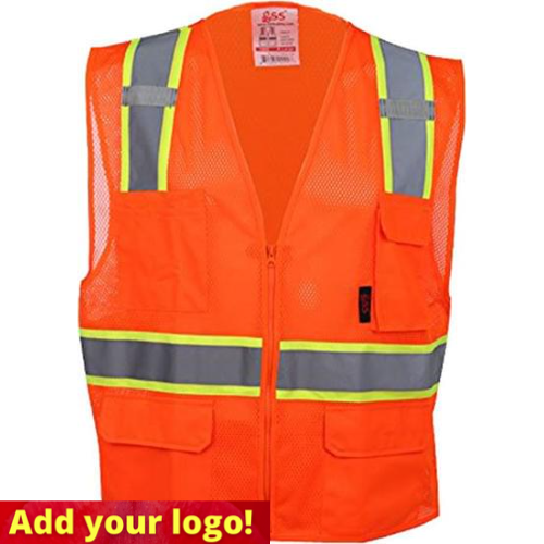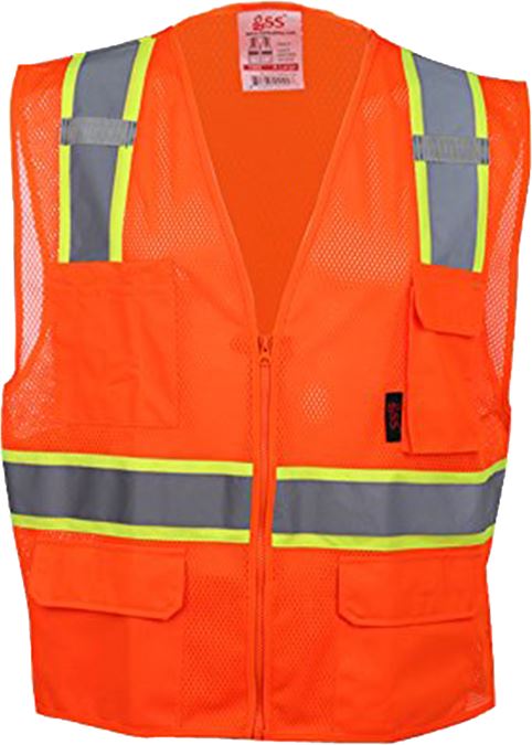 GSSŪ 1502 Premium Class 2 Mesh Two-Tone Hi-Vis Orange Safety Vest, 6 Pockets, Zipper Close
