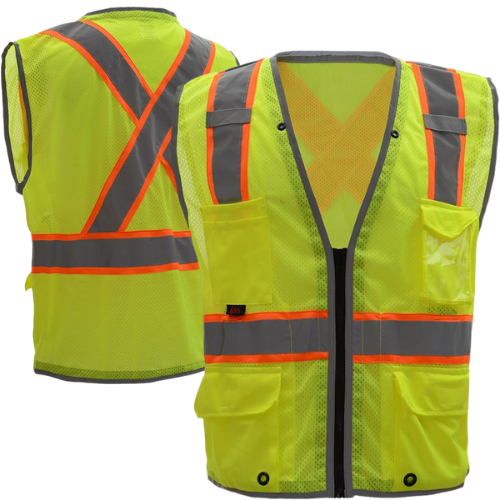 • Color – Lime with 2" Silver Reflective Striping and 3" Orange Contrast Striping that Form an X on the Back