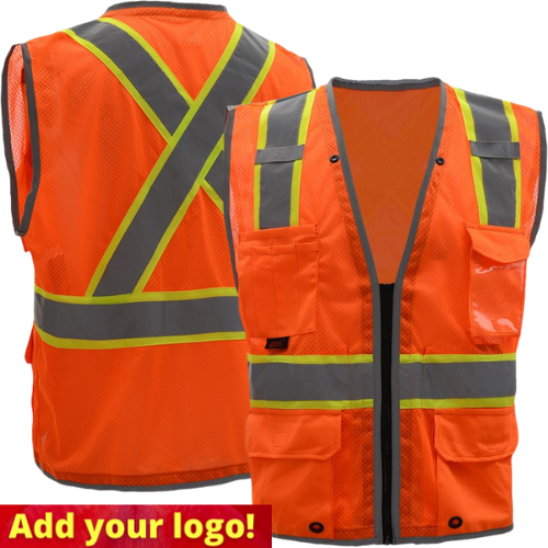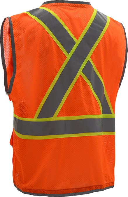 • Color – Orange with 2" Silver Reflective Striping and 3" Lime Contrast Striping that Form an X on the Back