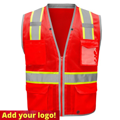GSSŪ 1712 Class 2 Hype-Lite Heavy Duty Hi-Vis Red Reflective Safety Vest, 6 Pockets