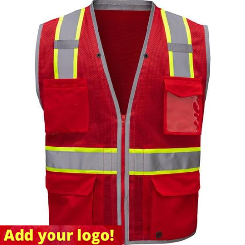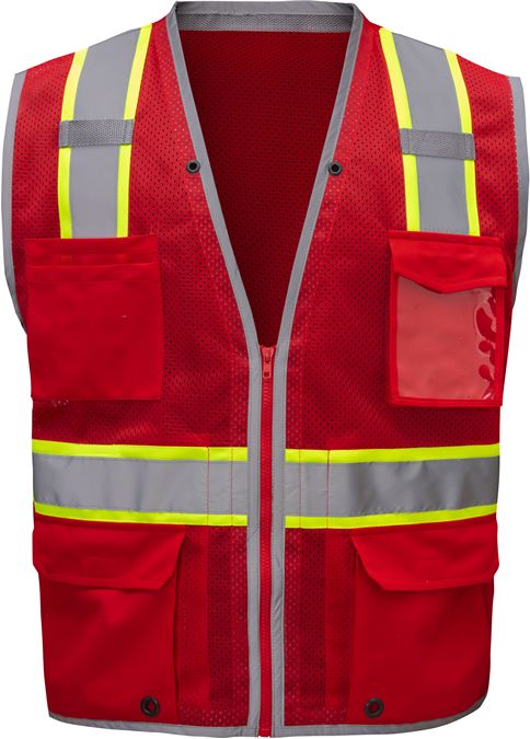 GSSŪ 1714 Red Enhanced Visibility Hype-Lite Heavy Duty Hi-Vis Safety Vest, 6 Pockets, Non-ANSI