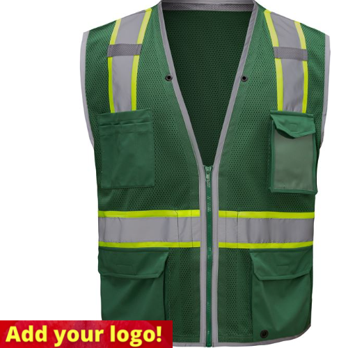 This enhanced visibility hi-vis vest from GSS features 2” reflective tape set on bright reflective edging to give the user extra visibility.  This safety vest features 6 pockets, including 2 inside pockets and a zipper front closure.  Made from 100% Smooth Mesh Polyester, this vest is ideal for employee Identification, special events and off road situations where visibility is a must.