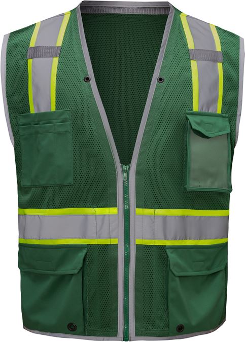 GSSŪ 1716 Enhanced Visibility Green Hype-Lite Heavy Duty Reflective Safety Vest, 6 Pockets, Zipper Close