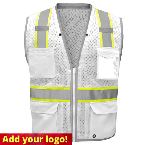 GSSŪ 1720 White Enhanced Visibility Hype-Lite Heavy Duty Reflective Safety Vest, 6 Pockets, Non-ANSI
