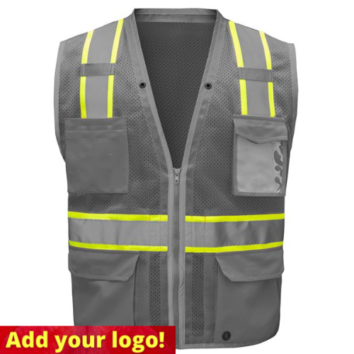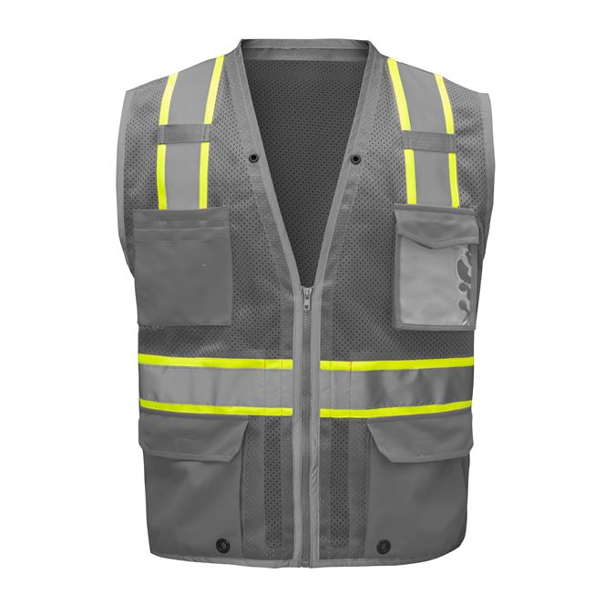 GSSŪ 1723 Gray Enhanced Visibility Hype-Lite Heavy Duty Reflective Safety Vest, 6 Pockets, Non-ANSI