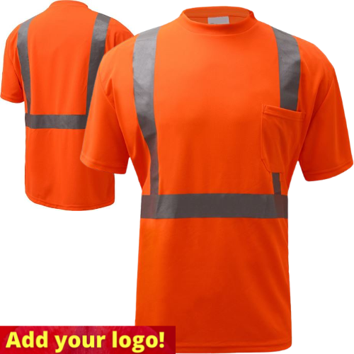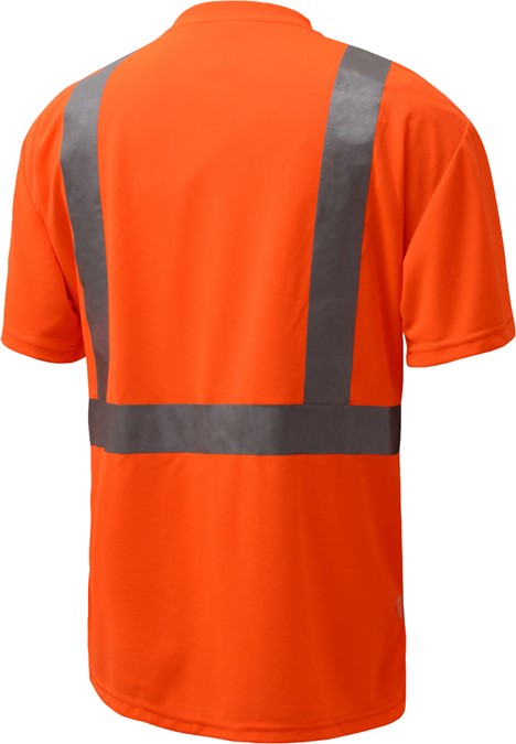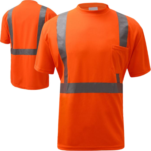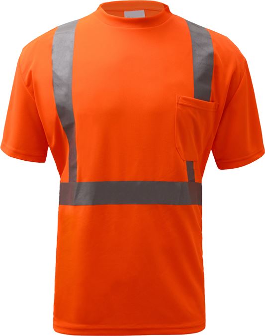 GSSŪ 5002 Class 2 Moisture Wicking Short Sleeve Hi-Vis Orange Safety T-Shirt, Chest Pocket