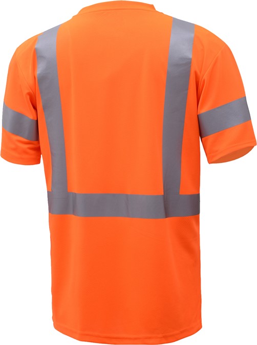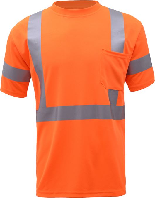 GSSŪ 5008 Class 3 Moisture Wicking Short Sleeve Safety T-Shirt, Hi-Vis Orange with Chest Pocket