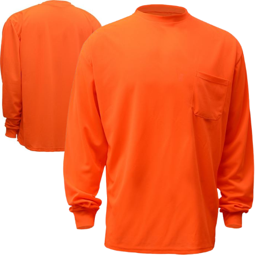 GSSŪ 5504 Moisture Wicking Enhanced Visibility Long Sleeve Orange T-Shirt with Chest Pocket
