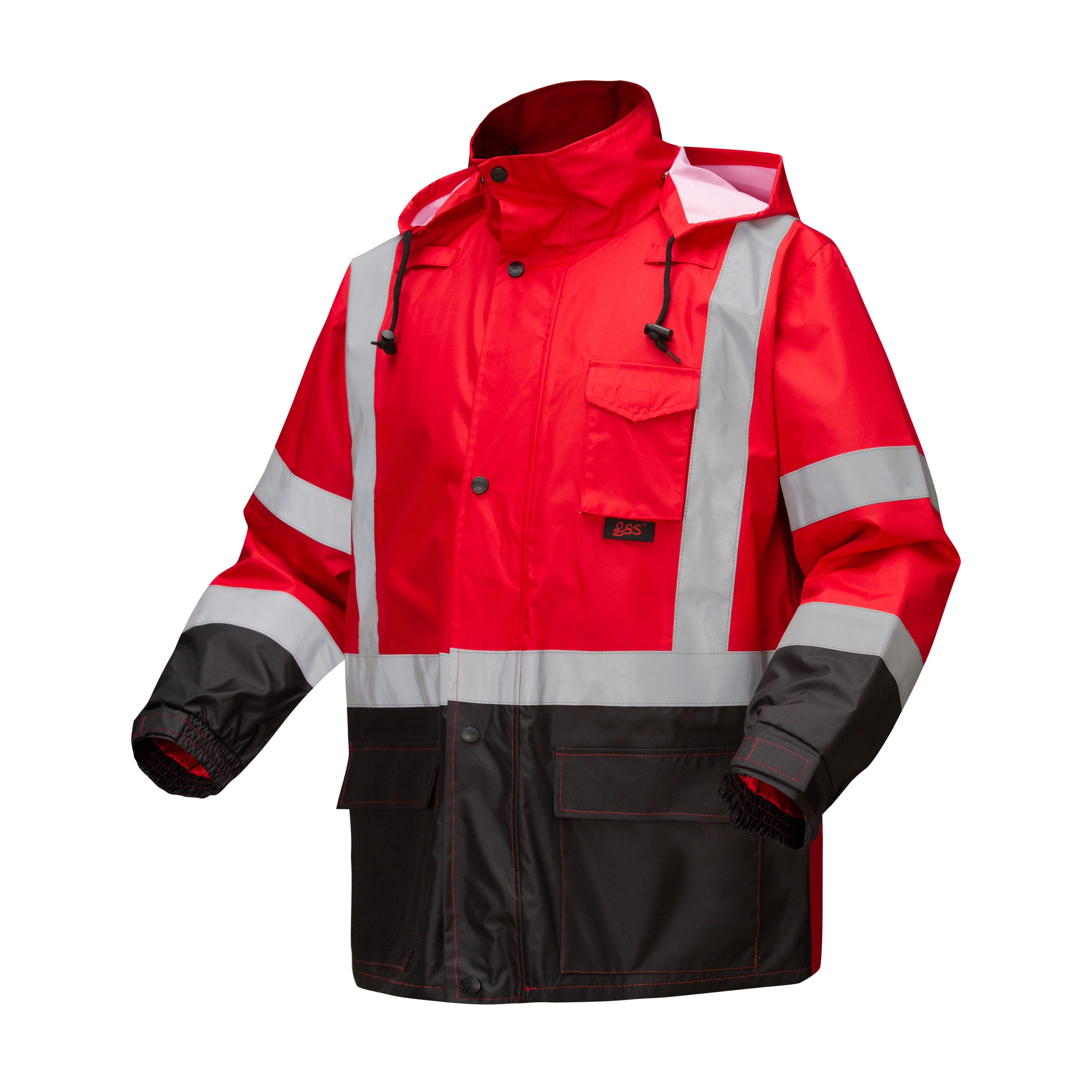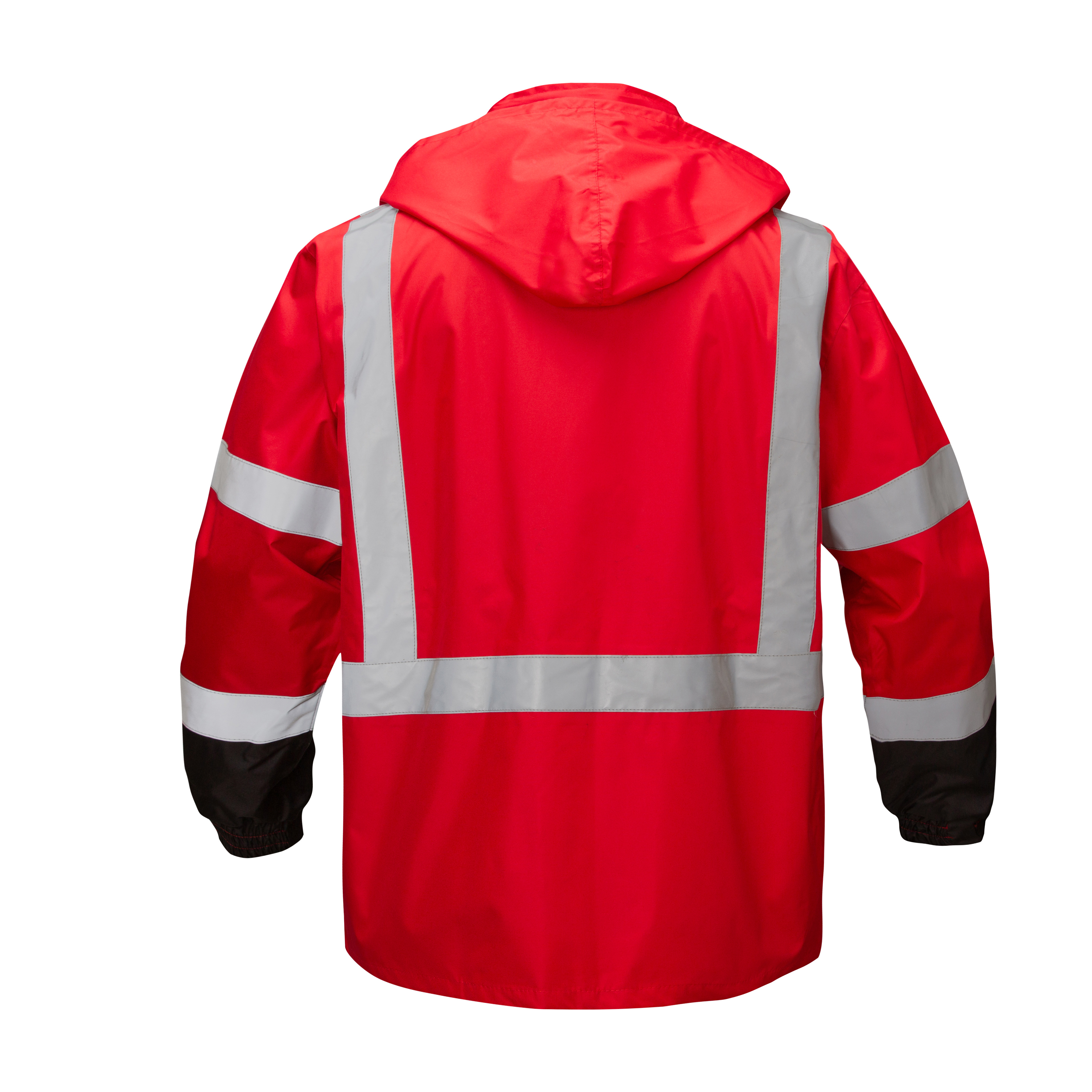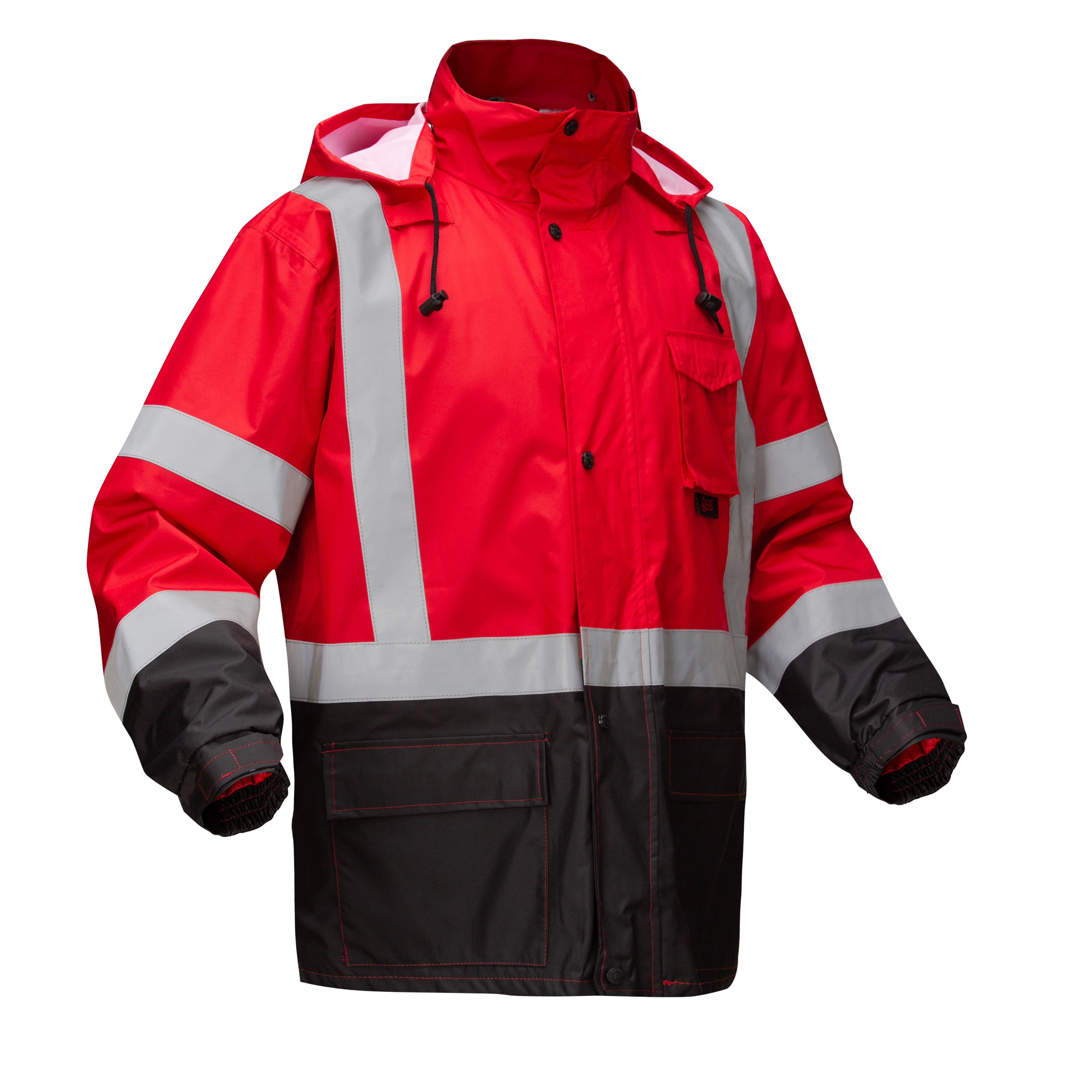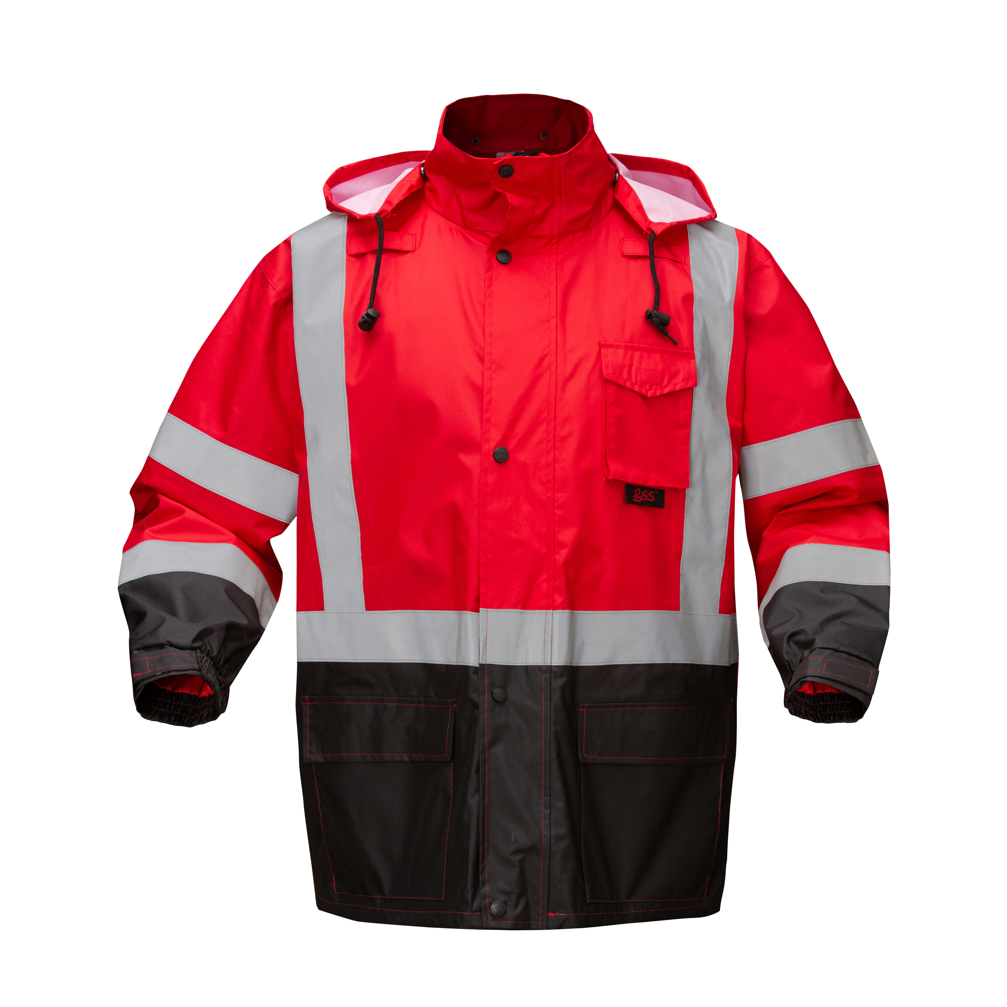 GSSŪ 6014 Non-ANSI Red Premium Hooded Rain Coat Black Bottom