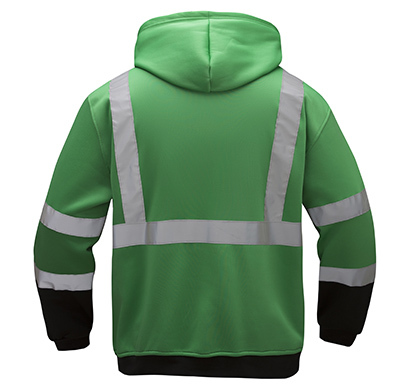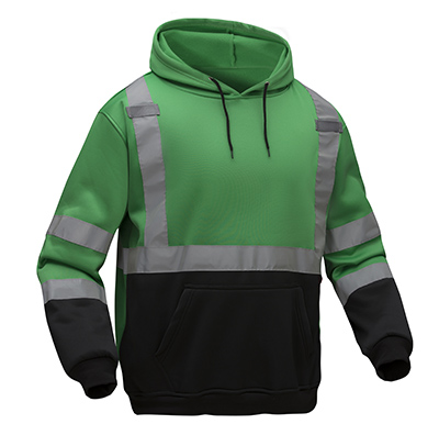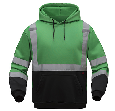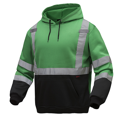 GSSŪ 7016 Non-ANSI CERT Green Hi-Vis Pullover Hooded Sweatshirt, Black Bottom