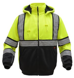 GSS® 7511 Class 3 Hi-Vis Lime/Black Onyx Heavy Weight Hooded Zip Up Sweatshirt