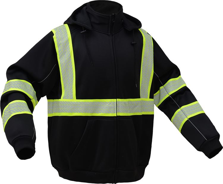GSSŪ 7513 Hi-Vis Black Onyx Heavy Weight Hooded Zip Up Sweatshirt with Dupont Fabric Protect