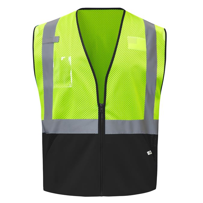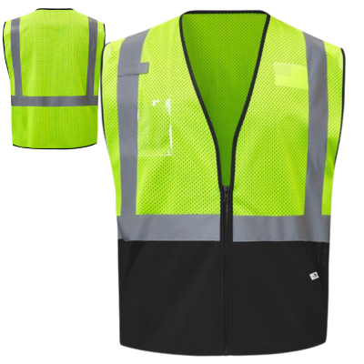 GSS® Repreve® 1015 Recycled Polyester Mesh Class 2 Two-Tone Reflective Safety Vest, Black/Hi-Vis Lime