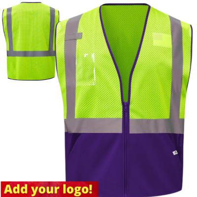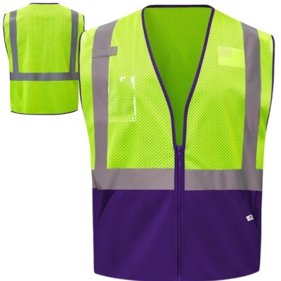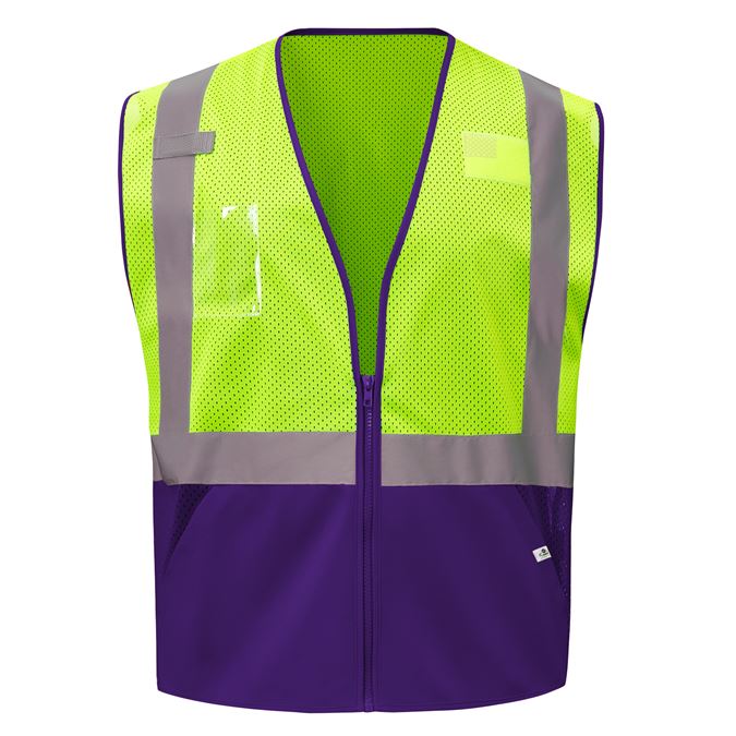 GSS® Repreve® 1017 Recycled Polyester Mesh Class 2 Two-Tone Reflective Safety Vest, Purple/Hi-Vis Lime