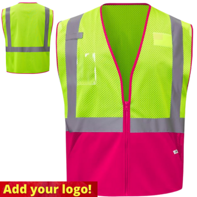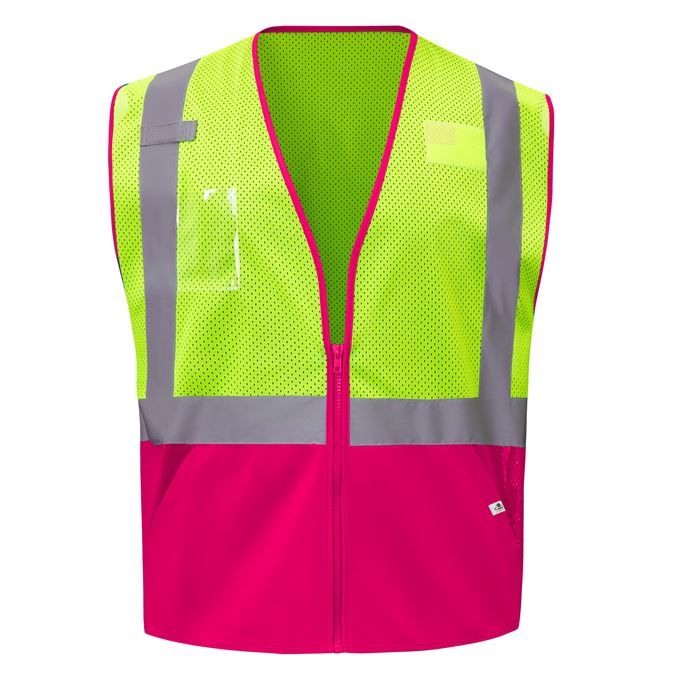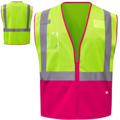 GSS® Repreve® 1019 Recycled Polyester Mesh Class 2 Two-Tone Reflective Safety Vest, Pink/Hi-Vis Lime
