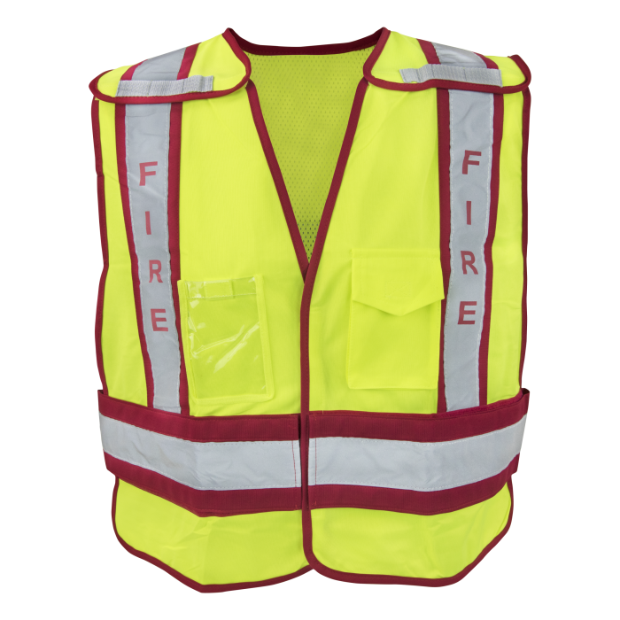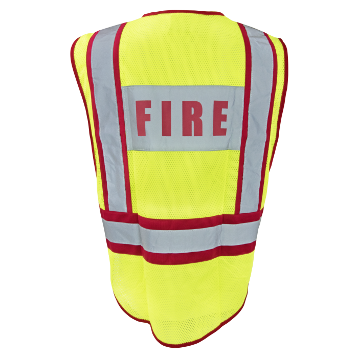 Ironwear® 1246-F-RD Class 2 Public Safety Vest, "Fire", Hi-Vis Lime/Red