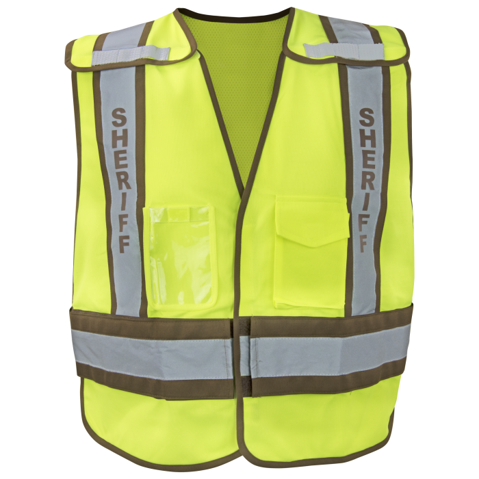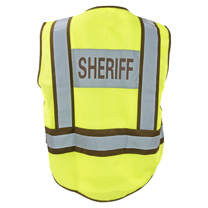 • Color – Lime with 2” Silver Reflective Striping Over 4” Brown Two-Tone Contrasting Striping with Sheriff Printed
