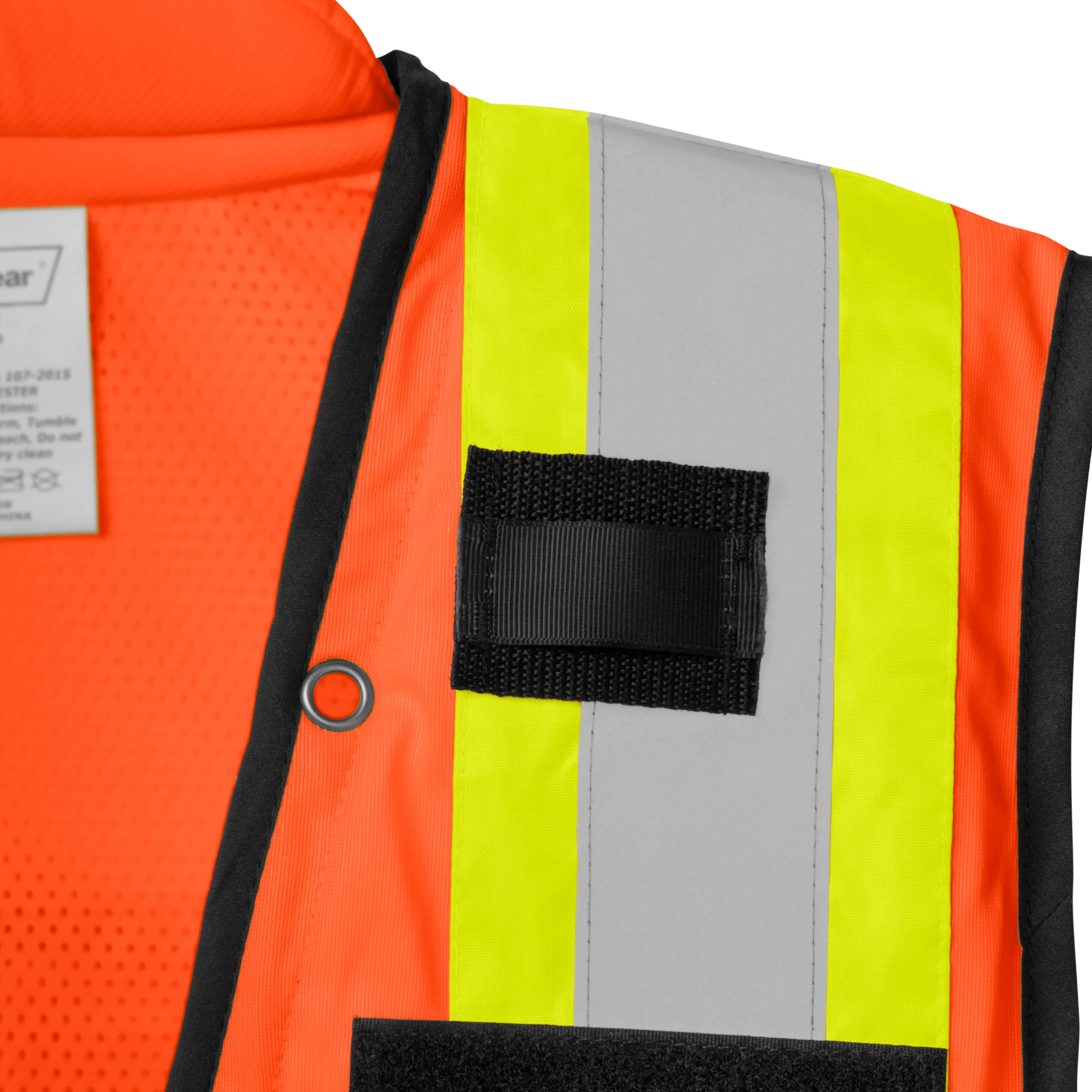 • Reflective detailing: 2″ silver reflective tape layered over contrasting orange and lime panels boosts visibility in low-light conditions.