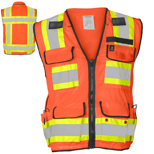 Step onto the jobsite with a safety vest that’s as serious about visibility and comfort as the seasoned foreman who taught you to “always wear your PPE.” This high-visibility flame-retardant surveyor vest is built for pros who need durable performance, plenty of storage, and ANSI/ISEA Class 2 compliance without fuss.
