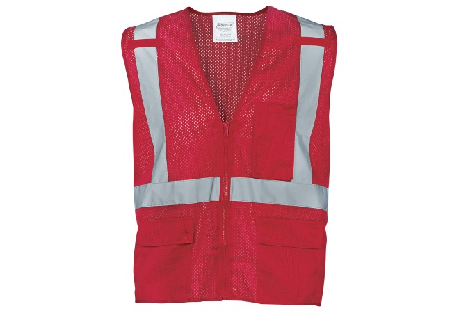 • Color – Red with 2" Silver Reflective Striping in Suspender Pattern Over Top of Shoulders as Well as 360˚ Continuous Reflective Bands Encircling the Torso