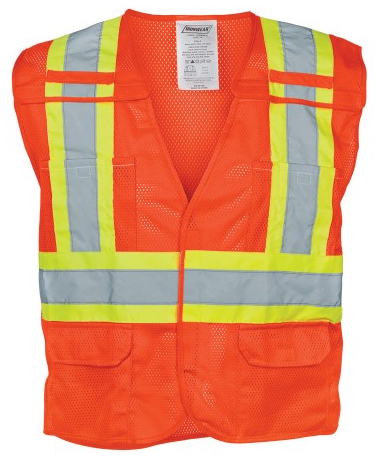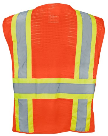 • Color – Orange with 2" Silver Reflective Striping and 4" Lime Contrast Striping in a Suspender Pattern Over Top of Shoulders as Well as 360˚ Continuous Bands Encircling the Torso