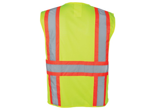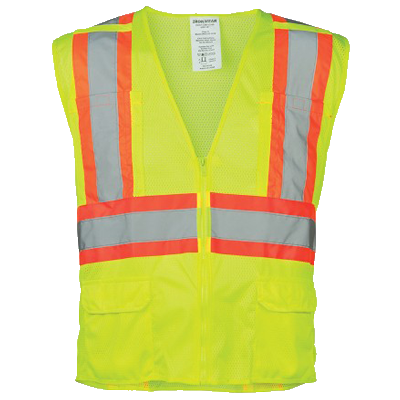 • Color – Lime with 2" Silver and 4” Orange Reflective Striping in Suspender Pattern Over Top of Shoulders as Well as 360˚ Continuous Reflective Bands Encircling the Torso