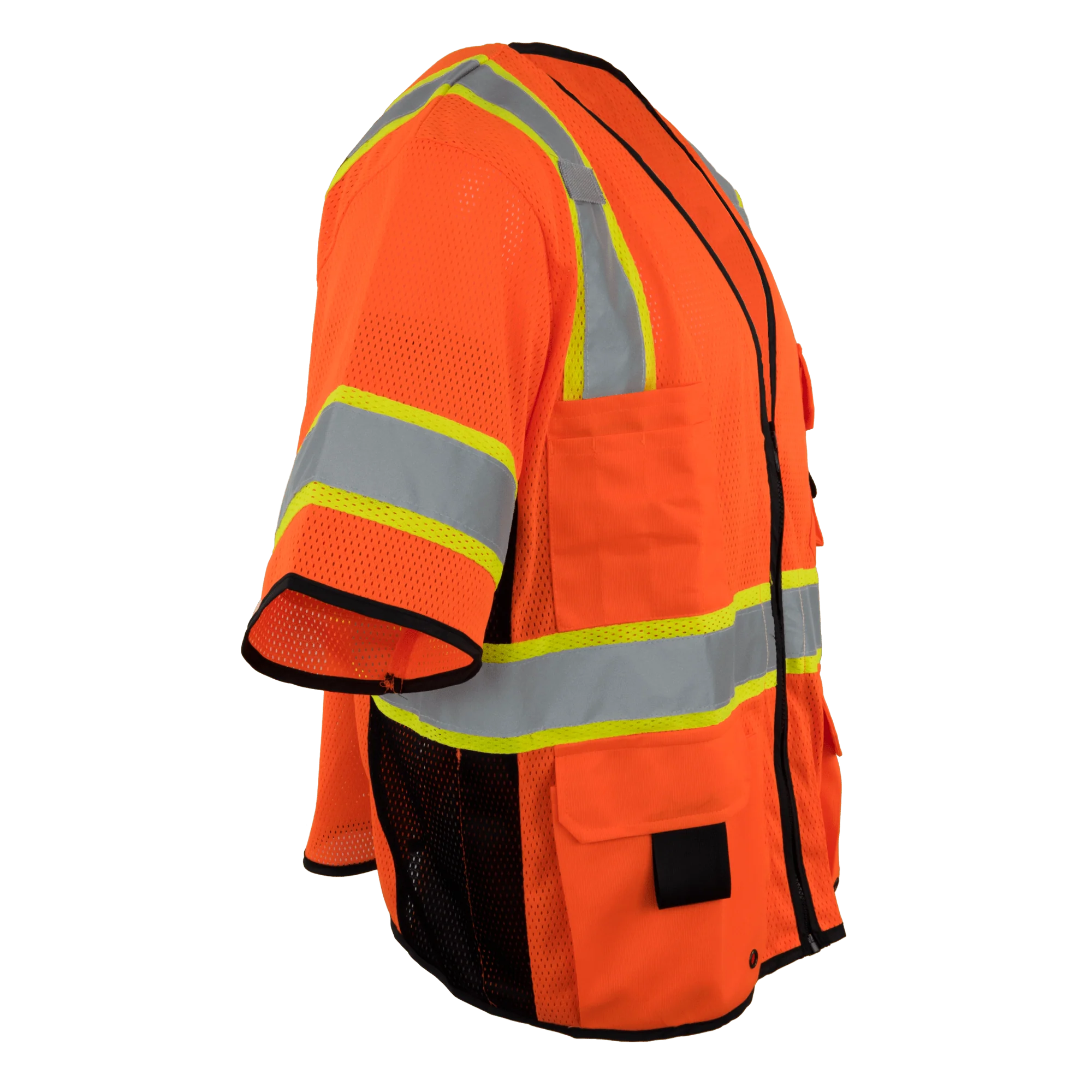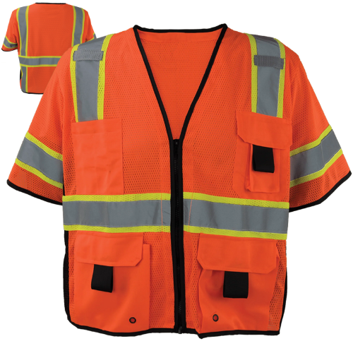 Ironwear® 1296 Class 3 Hi-Vis Mesh Safety Vest, Hi-Vis Orange, Two Tone, Zipper & Radio Clips
