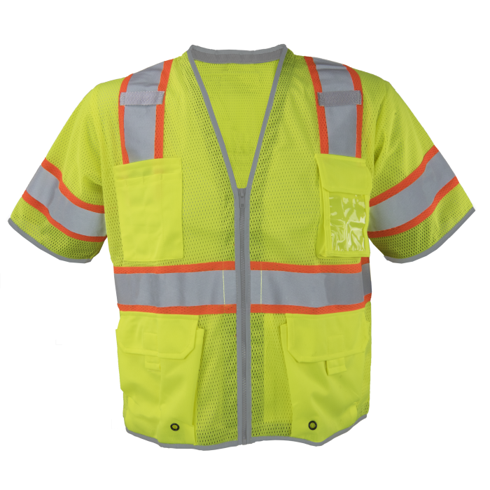 Ironwear 1299-LZ-RD Hi Visiblity Lime NiteGlo™ Class 3 Safety Vest with 6 Pockets