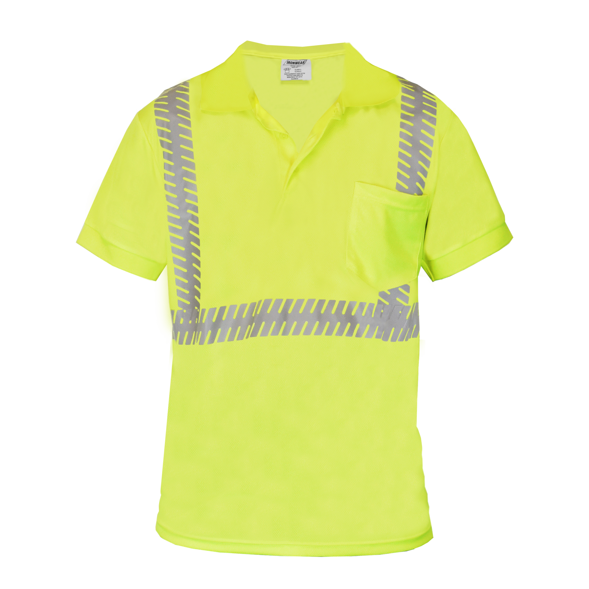 Ironwear® 1820-L ANSI Class 2 Hi-Vis Lime Short Sleeve Polo Shirt with Tread Pattern Reflective Tape