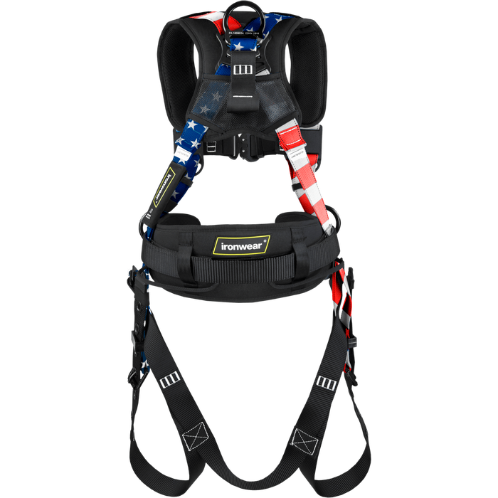 Ironwear™ 2160-RWB Stars & Stripes Full Body Harness, Shoulder Pads, Tool & Back Support Belt, ANSI Z359.11