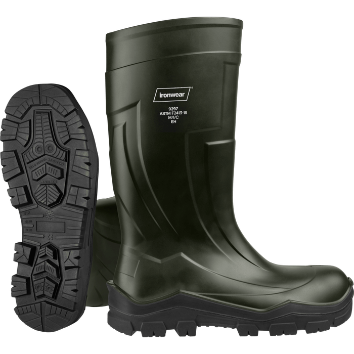 Ironwear® IronMAX2 15" 100% Waterproof Rubber Boots, Black, Slip Resistant