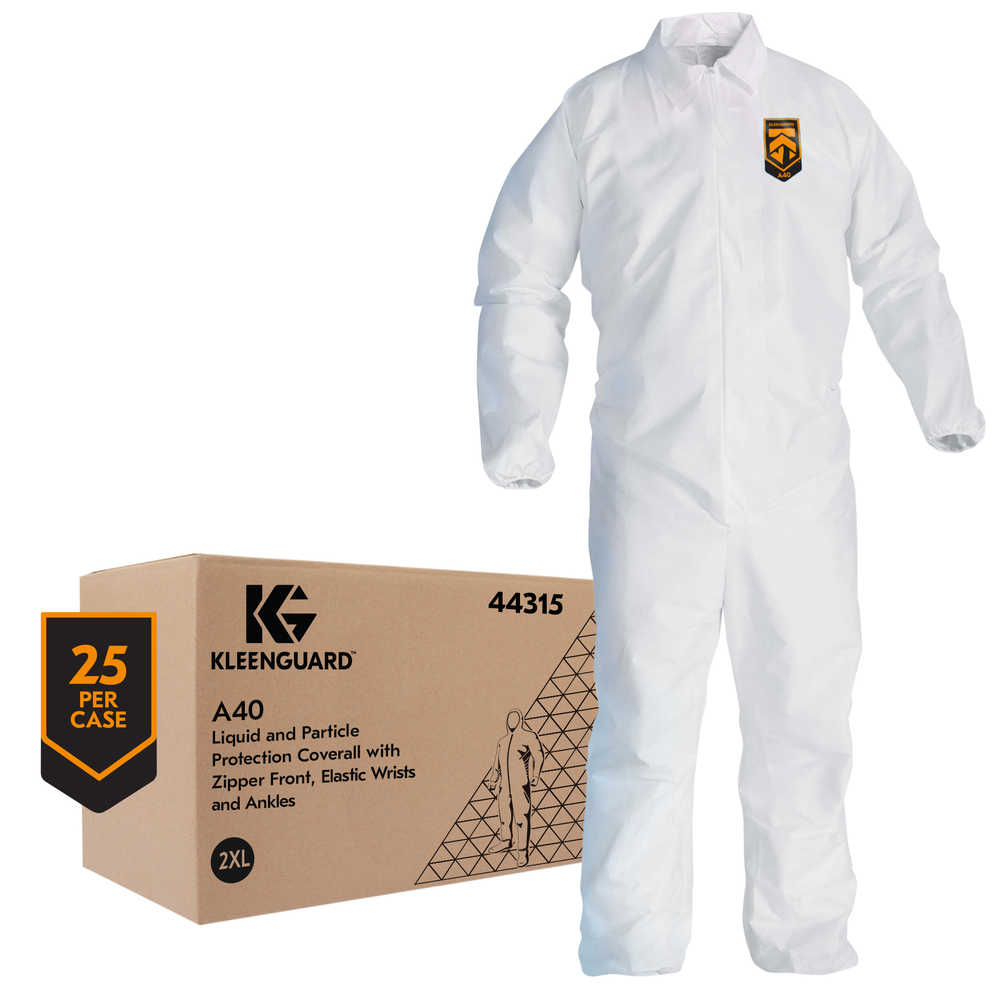 Kimberly Clark® KleenGuard™ A40 Coveralls, White, Elastic Wrists and Ankles, Liquid & Particle Protection, 25/Case