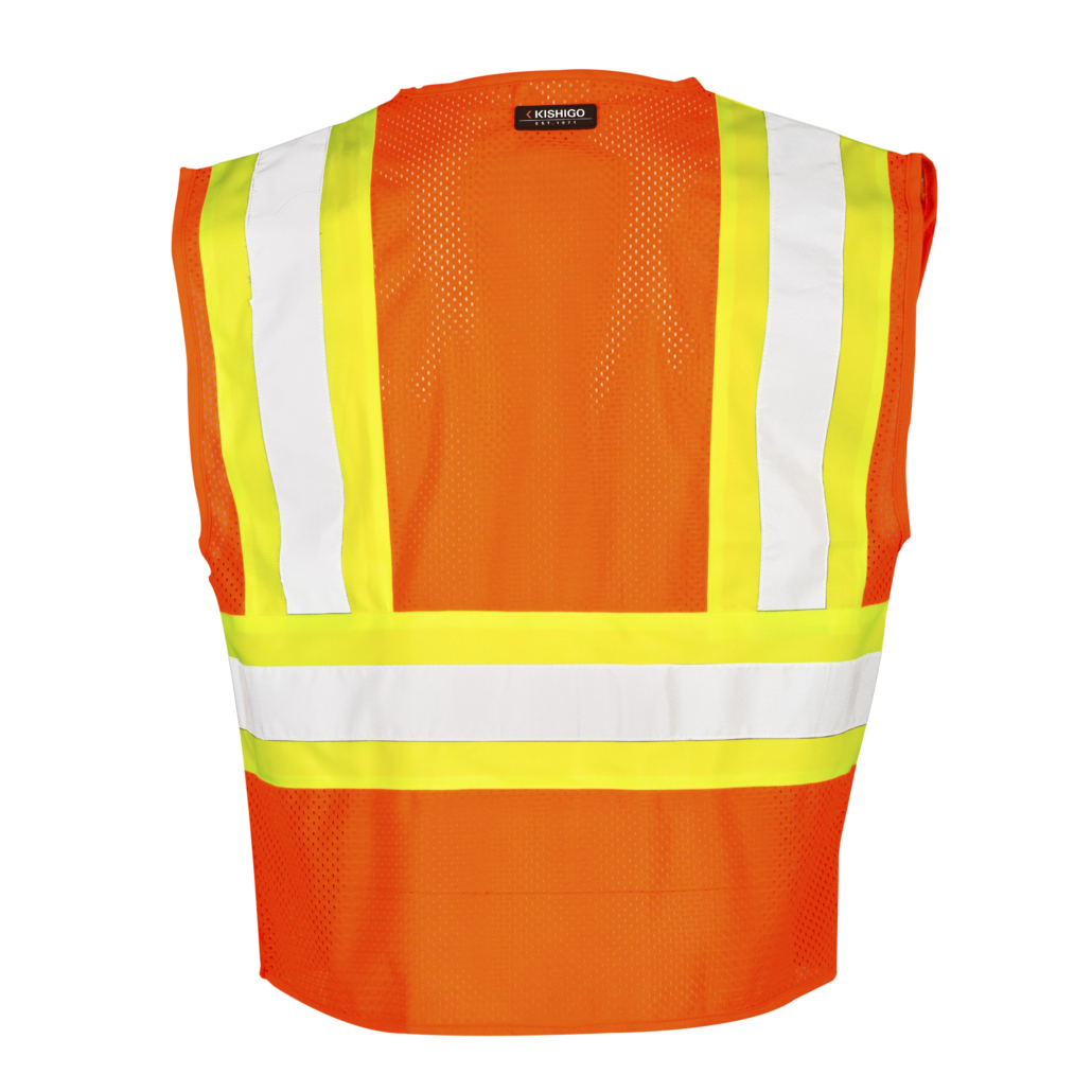 • Hi-Vis Orange vest with 2" wide high performance reflective material with 4.5" Hi-Vis Lime stripes