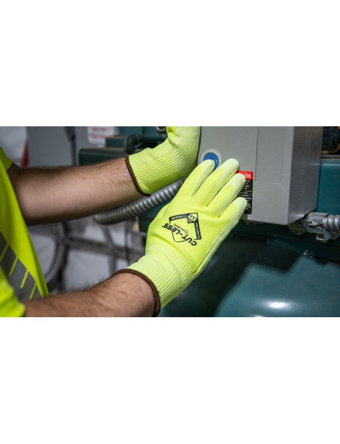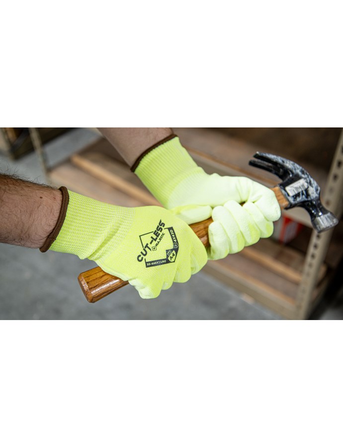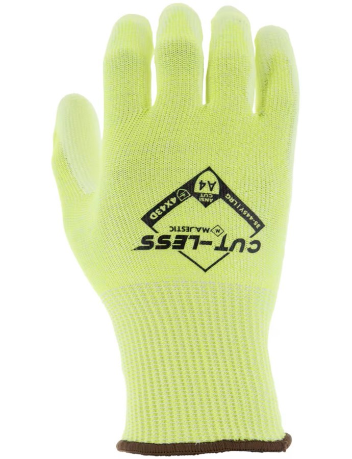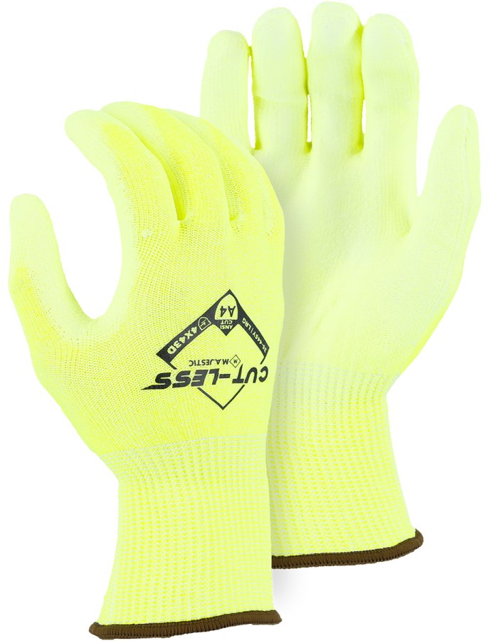 Majestic 35-445Y Cut-Less Korplex Gloves, Polyurethane Palm, ANSI A4 Cut Level, Hi-Vis Yellow, Dozen