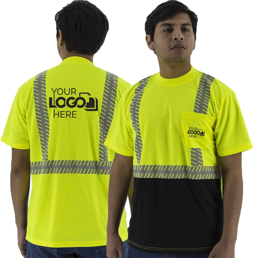 Majestic® 75-5215 Class 2 High Visibility Yellow/Black Short Sleeve T-Shirt with Reflective Chainsaw Striping